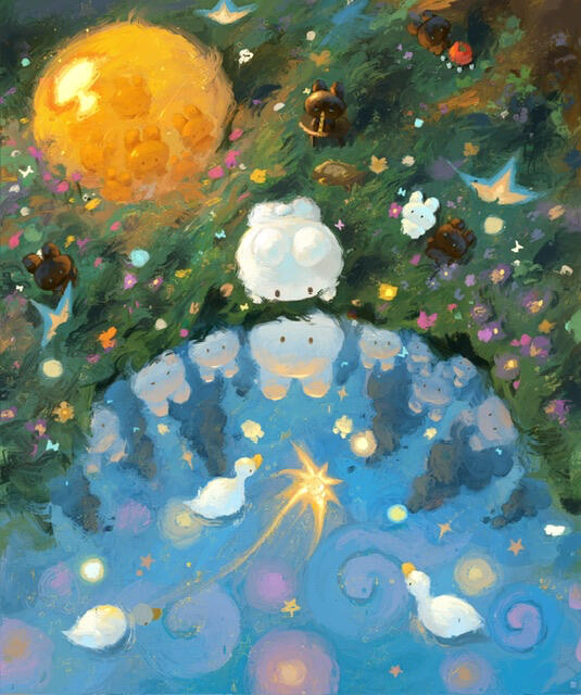- Description: I want to commission you to draw a peaceful landscape with a lot of fallen stars and small fishes around etc